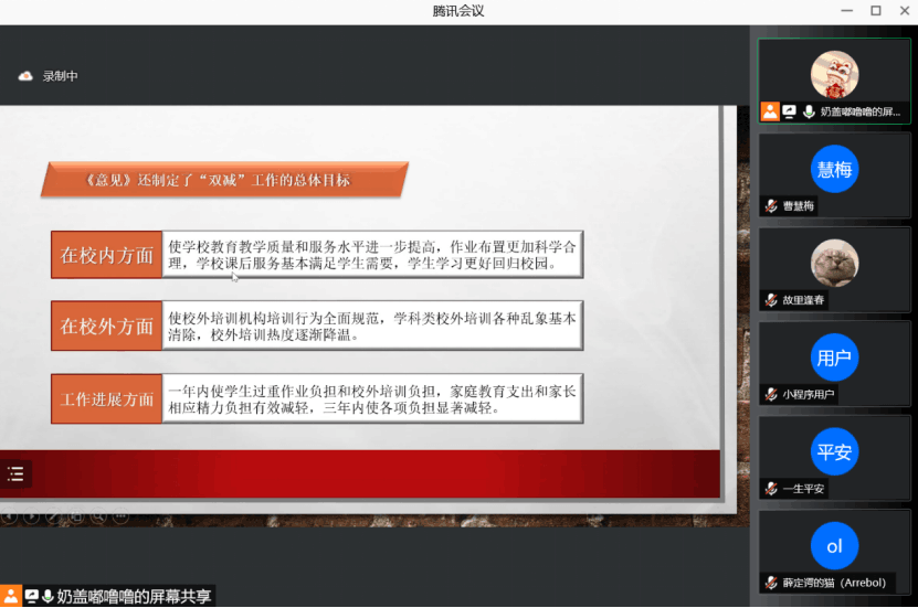 晚冬时节,雪花飘飘,洋洋洒洒的雪花预示着收获满满。活动伊始,主持人带领观众们进行有奖问答活动,大家踊跃抢答并发表自己对于“双减政策”有关问题的见解,随后,宣讲活动正式开始。首先,主讲人从中央有关文件、推进思路两方面对“双减政策”进行解读。她表示,双减政策是全面贯彻党的教育方针,落实立德树人根本任务的一项教育改革措施,推进双减政策实施将有效推进教育改革的进程。随后,主持人从源头治理、系统治理、综合治理、依法治理四方面详细解读双减政策实施的基本思路,并对学生较为关心的作业问题进行独到的讲解,并指明:减轻学生过重作业负担是“双减”的指南之一。最后,通过播放 《小学生眼中的双减政策》视频,让观众在小学生们愉快的话语中感受双减政策的魅力与作用。宣讲结束后,与会学生积极与主讲人互动,提出自己对于双减政策的疑问之处,主持人耐心为其解答,大家纷纷表示双减政策是一项有利于学生全面发展的切实政策。