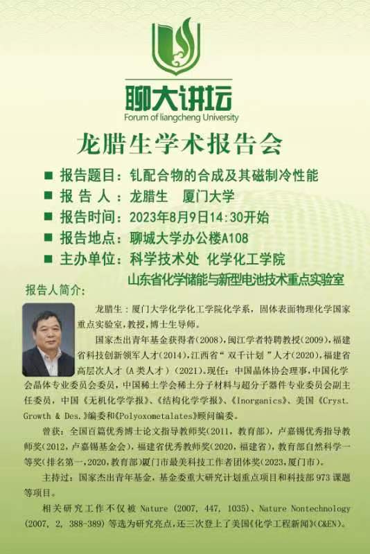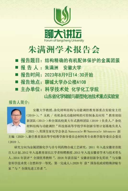 首页» 通知公告» 聊大讲坛——朱满洲教授、王训教授、龙腊生教授、张亚文教授学术报告会