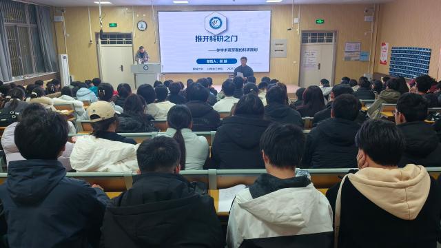 吴越以“推开科研之门——你学术萌芽期的科研规划”为主题,从科研的内涵、进行科研的原因、科研入门四步法、正确看待AI科研四个方面展开全面论述。他提出“科研=好奇心+系统方法+持续努力”的公式,深入浅出地解析了科研的本质,从知识活化、思维淬炼、技能装备、未来探路四个维度,向同学们阐明本科阶段接触科研的重要意义与价值。吴越系统介绍了“科研入门四步法”,为同学们提供了清晰的行动指引,更好地帮助他们实现从“学生”到“研究者”的身份转变。同时,他强调要正确看待人工智能在科研中的作用,呼吁同学们严守学术规范,善用而不依赖AI,保持科研过程中的主体性。