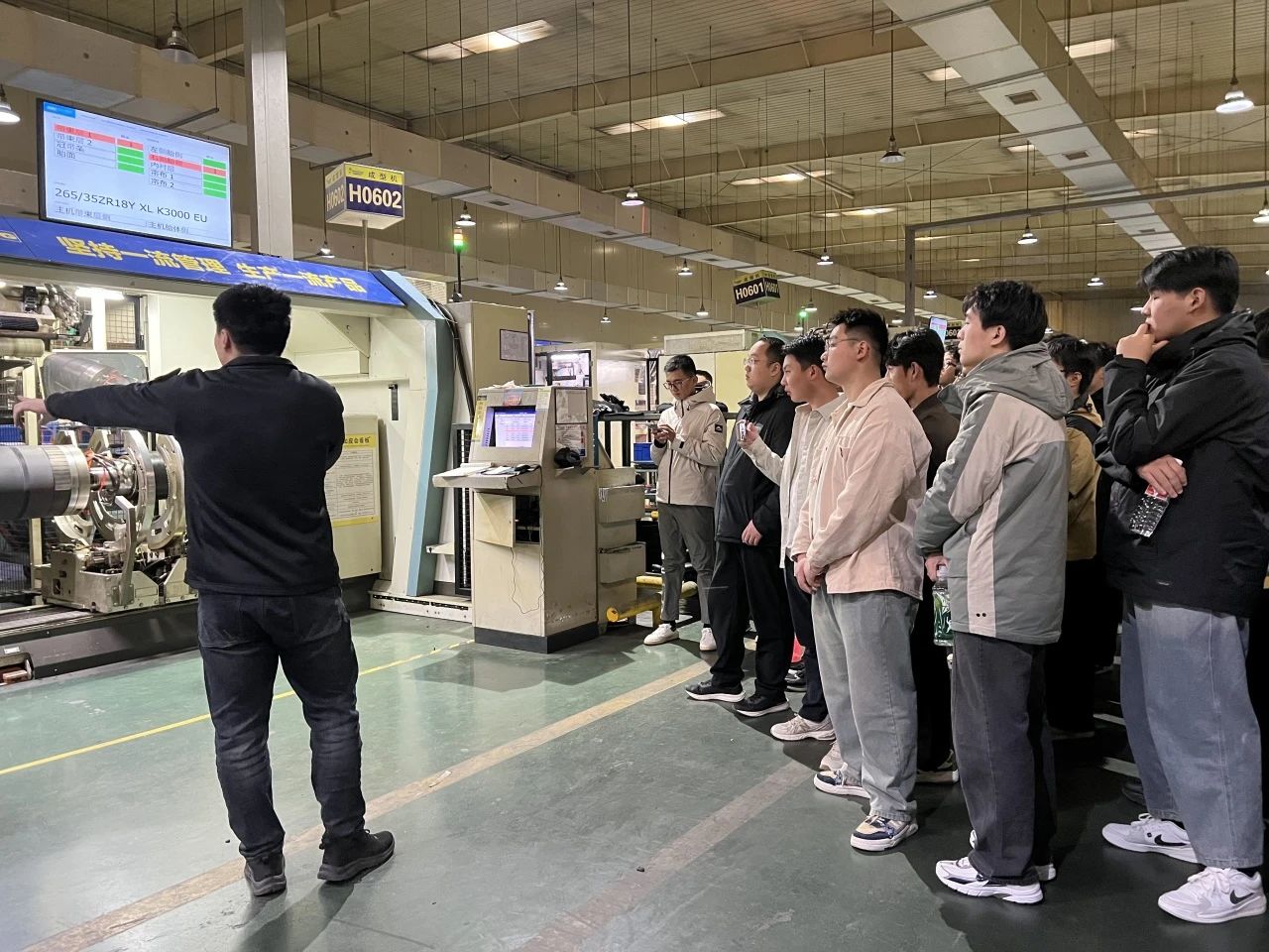 29日下午,企业负责人带领365上市公司官网师生参观了企业车间,重点聚焦轮胎生产工艺流程,从原料混合搅拌,到产出轮胎部件,再到部件组装,最后经过硫化制成成品,各环节有序衔接。师生们认真学习并咨询相关专业问题,深入了解各环节要点,对专业知识在实际生产中的应用有了更加深刻的理解,同时真切感受到行业的前沿技术与创新理念。