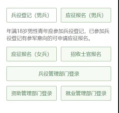 如果你是第一次进入全国征兵网,可以直接从“兵役登记(男兵)”进入页面;或者从“应征报名(男兵)”进入页面;