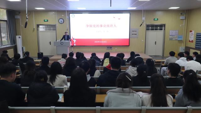 开班仪式结束后,李鹏以《争做党的事业接班人》为题,从党旗所指、青春所向,与党相识、共筑初心,端正作风、严守纪律,红色洗礼、砥砺前行,领悟思想、筑牢根基,担当尽责、实干笃行,明晰条件、向党靠拢七部分内容出发为全体学员讲授专题党课。李鹏以党的百年奋斗历程为切入点,回顾了中国共产党团结带领中国人民在革命、建设与改革中取得的辉煌成就,系统阐释了党的指导思想,重点解读了习近平新时代中国特色社会主义思想作为马克思主义中国化时代化最新成果的重大意义,鼓励同学们深学细悟,筑牢理论根基。李鹏结合新时代新征程的使命任务强调,青年学员正处于与民族复兴伟业同向同行的黄金时期,必须将个人理想融入国家发展,在中国式现代化建设的各个领域挺膺担当。最后,他希望全体学员珍惜培训机会,端正入党动机,严守学习纪律,将矢志报国、赤诚奉献的坚定信念转化为刻苦学习、实干笃行的具体行动,努力成长为党的事业的合格建设者和可靠接班人。