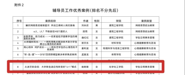 2024 年10 月,2024 年辅导员工作创新项目辅导员工作优秀案例《从迷茫到自信:大学新生适应性转变的“4+1”模式》