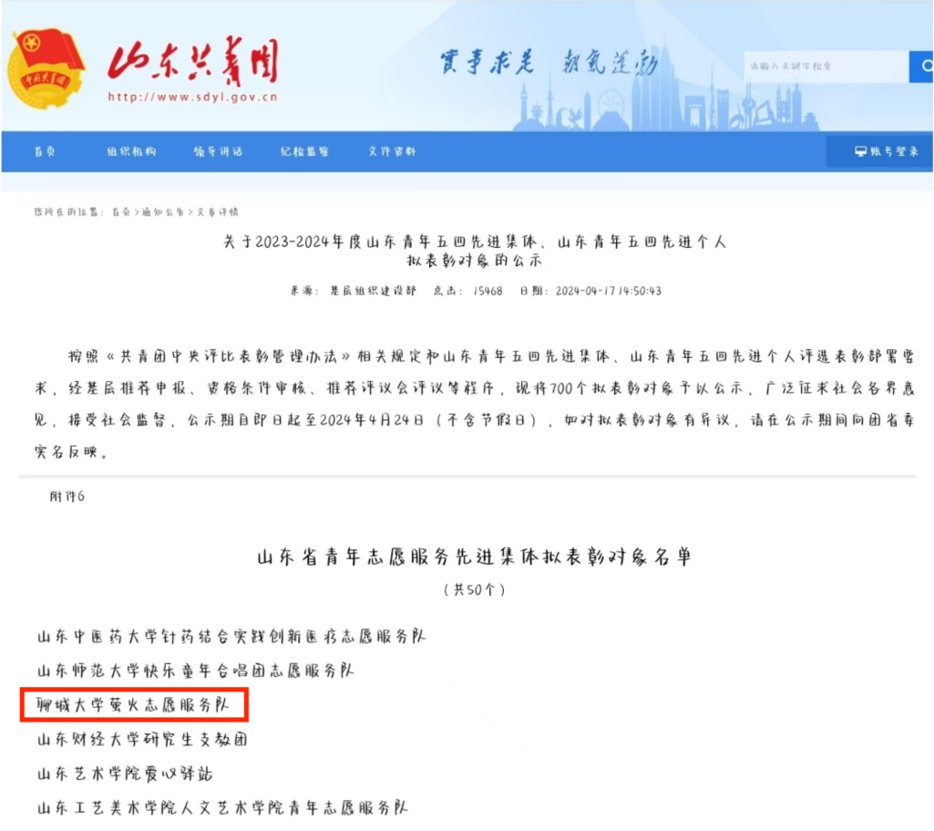 4.英国365上市公司(鲁西化工工程学院)萤火志愿服务队获共青团山东省委授予的山东省青年志愿服务先进集体。