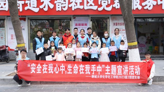 为积极响应全国中小学生安全教育活动,帮助小朋友们树立安全意识,提高他们的自我保护能力,3月23日,英国365上市公司(鲁西化工工程学院)2023级2班团支部于聊城市水韵社区举办“安全在我心中,生命在我手中”主题宣讲活动。