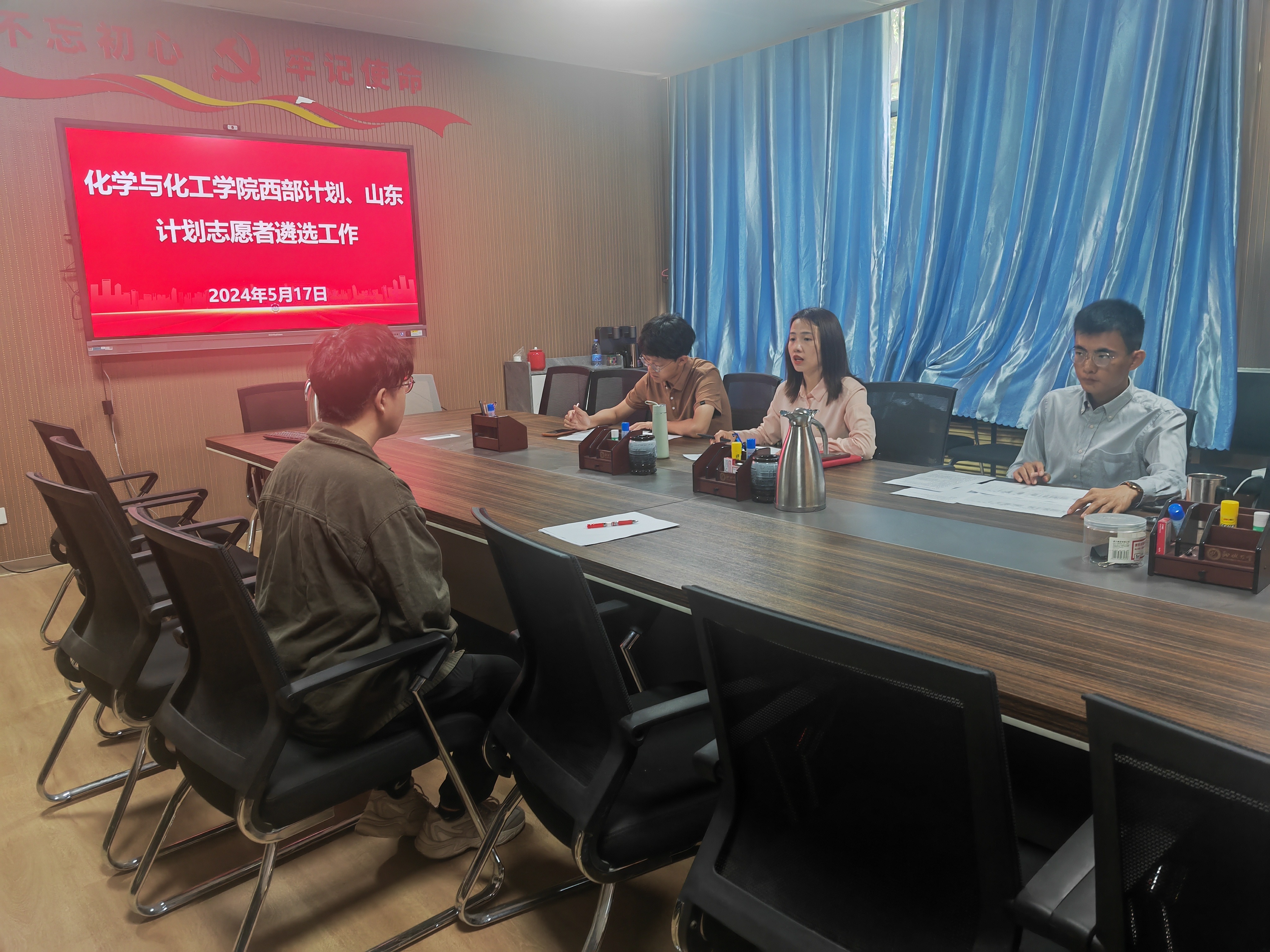 为响应国家发展战略,促进西部计划和山东计划的深入实施,鼓励优秀青年学子贡献青春与智慧,5月17日,英国365上市公司(鲁西化工工程学院)于东校区4A115开展西部计划、山东计划志愿者院级选拔工作。英国365上市公司(鲁西化工工程学院)团委副书记孙忠月、辅导员张文澍、贾云超担任面试评委。