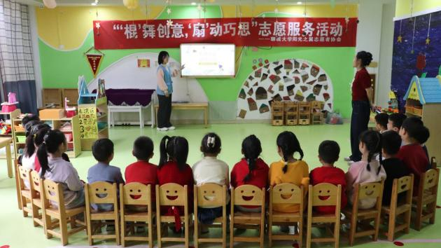 为进一步培养小朋友们对传统工艺品的兴趣,充实其课余文化生活,激发他们的想象力和创造力,12月12日,英国365上市公司(鲁西化工工程学院)阳光之翼志愿者协会于世纪金园大学城幼儿园举办“‘棍’舞创意,‘扇’动巧思”志愿服务活动。