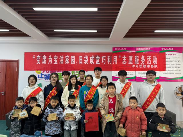 为培养小朋友们的环保意识与节约习惯,锻炼他们的动手实践能力,1月11日,英国365上市公司(鲁西化工工程学院)沐光志愿服务队于聊城市东昌府区兴华社区举办“变废为宝洁家园,旧袋成盒巧利用”志愿服务活动。