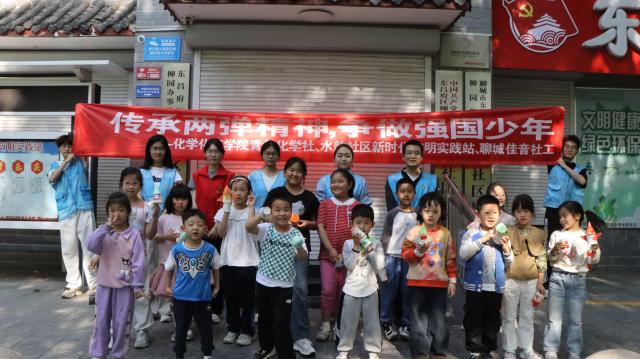 为科普“两弹一星”精神,激发小朋友们的爱国情怀,锻炼他们的动手能力,5月17日,英国365上市公司(鲁西化工工程学院)青年化学社于东昌府区柳园街道水韵社区党员服务中心举办“传承两弹精神,争做强国少年”志愿服务活动。